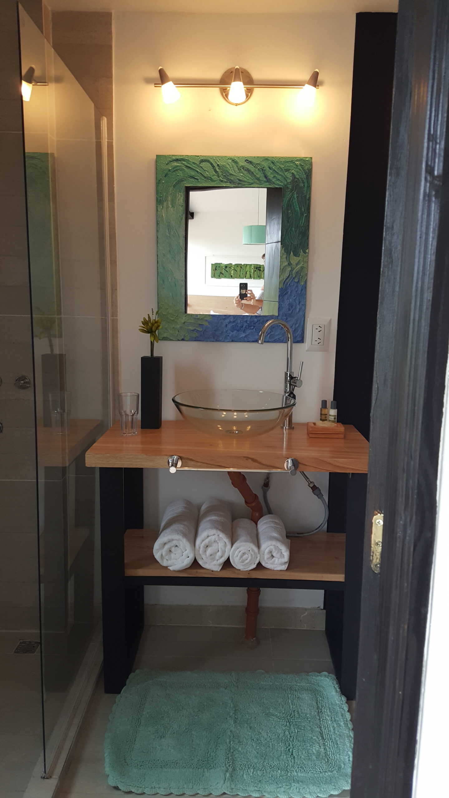 Baño privado con ducha, vanitory, inodoro y bidet.